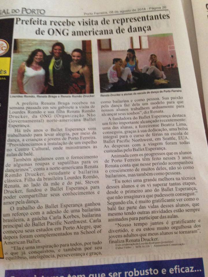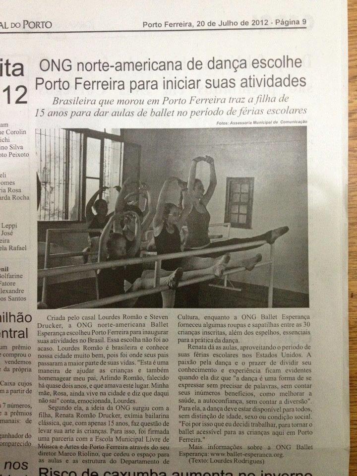 Ballet Esperança provides a scholarship program to give children the possibility to study dance abroad. The first scholarship recipient, Beatriz Lima, was rewarded a scholarship to study at Pacific Northwest Ballet for the 2014 summer intensive.