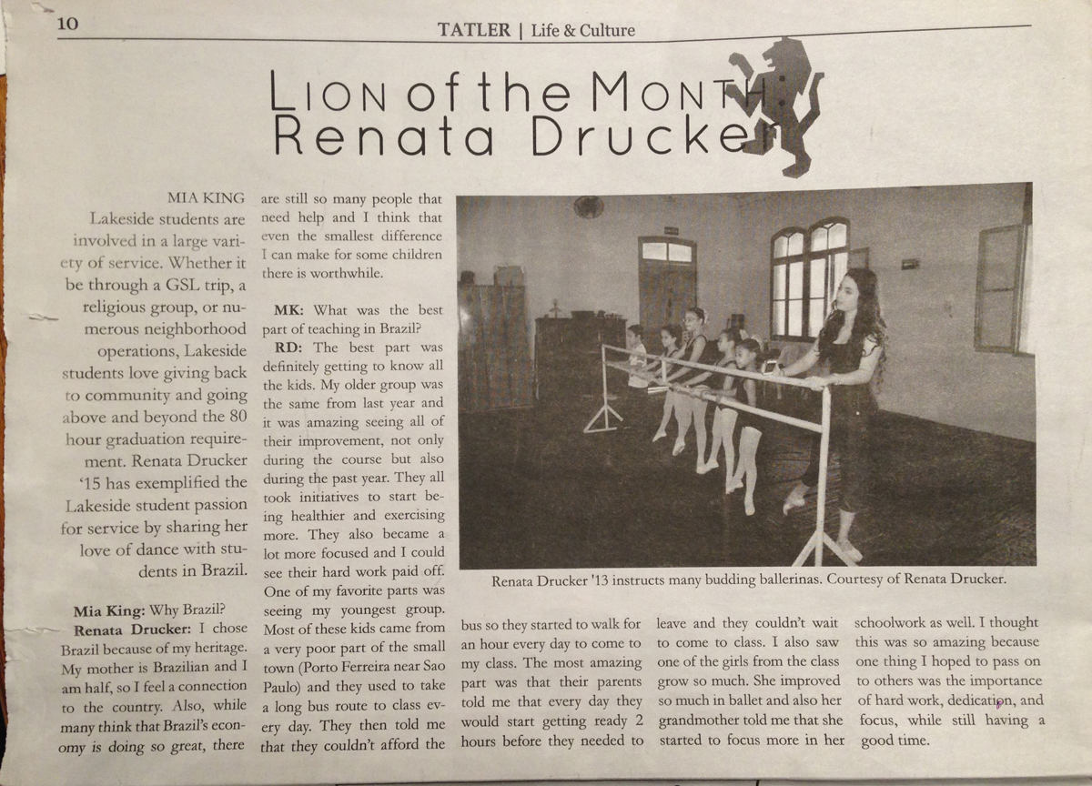 When I was 14 years old I finally understood how lucky I was that I always had access to the best quality dance education in the world. Dance pervaded my life. When visiting my grandparents in a small town in Brazil, I realized that many others did not have that same opportunity. I decided that I wanted to bring the passion of dance to others by sharing what I have been learning since the age of three. I strongly feel that ballet has helped me with my self-esteem, my self-confidence, my health, and it is great fun too! Others should be able to benefit from the rewards of dance too.
